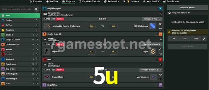A aposta 5u oferece aos jogadores a experiência mais conveniente de apostas em eSports!